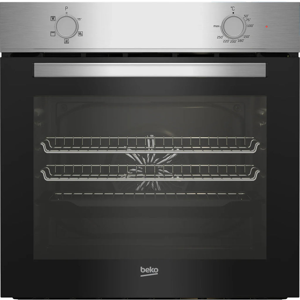 Feature Specification Pack contents Built-in single oven + 60 cm ceramic hob Oven type & capacity Fan oven, 66 L cavity, energy rating A Hob type 4-zone ceramic, side-control panel Colour / Finish Stainless steel Oven dimensions (H×W×D) 595 × 594 × 567 mm Hob dimensions (H×W×D) 35 × 580 × 510 mm Total power load (hob) 5.8 kW Oven power load 2.3 kW