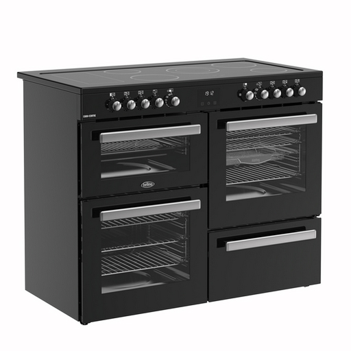 The Belling CC110EBLK 110 cm Cookcentre Electric Rangecooker is designed for serious home cooks who need power, flexibility, and style. With dual ovens, a separate grill, and a large 5-zone ceramic hob, this rangecooker makes it easy to prepare multiple dishes simultaneously, making it ideal for families, entertaining, or large-scale meal prep.