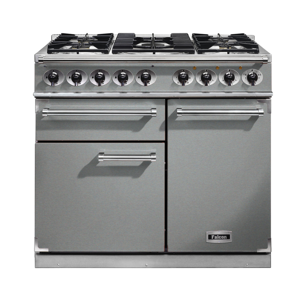 The Falcon Deluxe 1000 100cm Dual Fuel Range Cooker in Stainless Steel with Chrome trim delivers professional-grade performance for your kitchen. Featuring a large gas hob and dual multifunction electric ovens, this freestanding cooker combines precision, versatility, and sleek contemporary style.