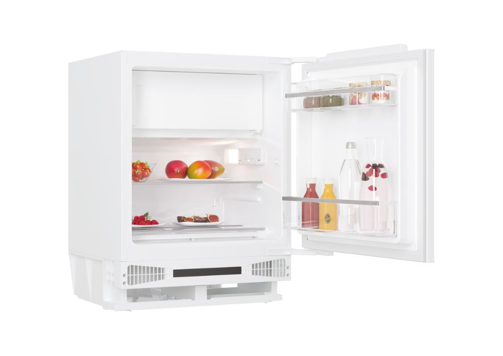 Hoover HOM4SE68EWPK. Appliance placement: Built-in, Product colour: White, Door hinge: Right. Total net capacity: 111 L, Climate class: N-ST, Noise emission class: C. Fridge net capacity: 95 L, Lamp type: LED. Freezer position: Top-placed, Freezer net capacity: 16 L, Freezing capacity: 2.6 kg/24h. Energy efficiency class: E, Annual energy consumption: 147 kWh, Energy efficiency scale: A to G
