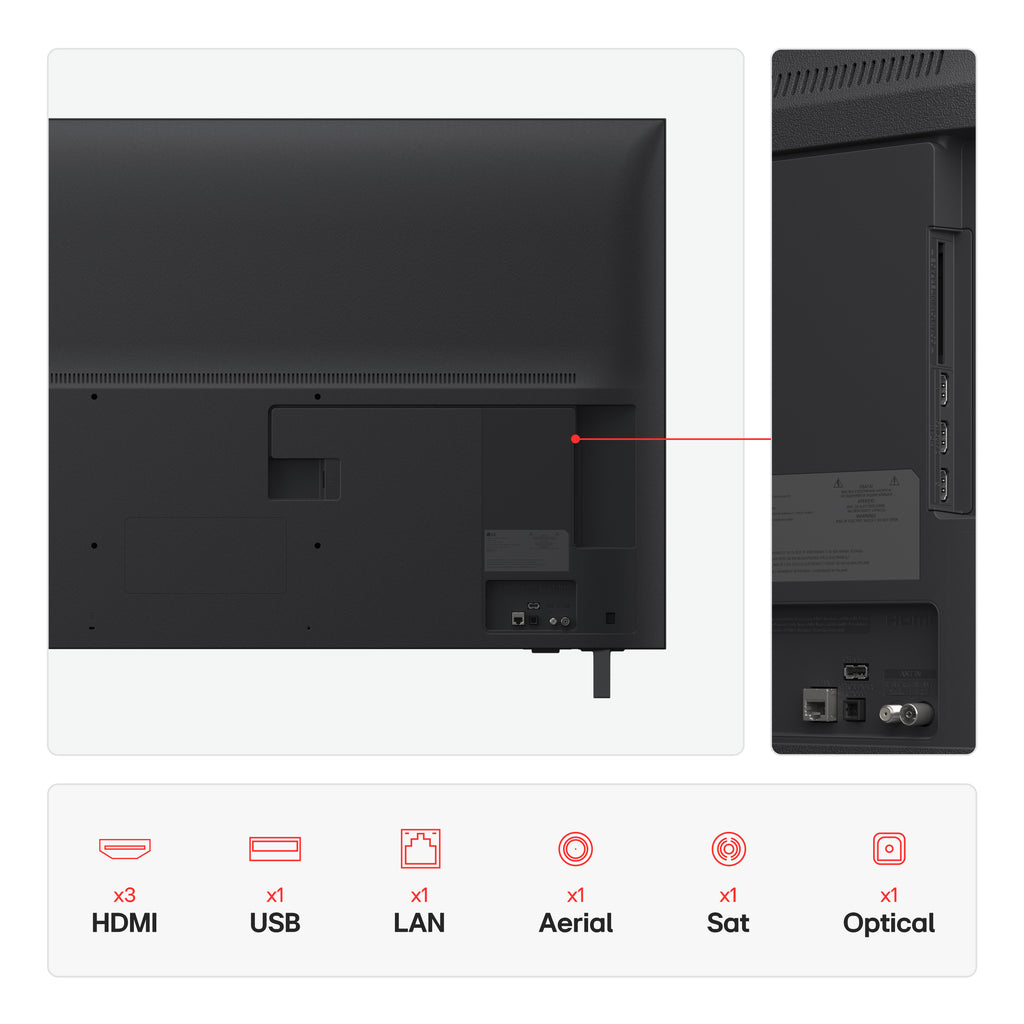 | Connections / Ports | 3 × HDMI 2.0, 1 × USB, Optical Audio Out, Ethernet, WiFi, Bluetooth |