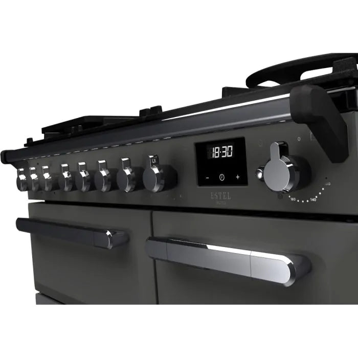 Blending performance, practicality, and style, the Estel Deluxe makes a statement in any kitchen. Its combination of responsive gas cooking and multifunction ovens ensures flexibility, while its slate and chrome finish adds a modern touch of sophistication.